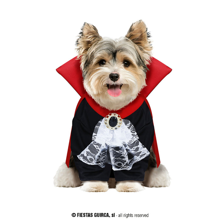 Fai in modo che il tuo cagnolino si trasformi in un temibile vampiro! Questo costume da vampiro di Halloween per cagnolini presenta un jabot e un mantello rosso, andando a creare un look davvero spettrale. La festa di Halloween non sarà mai più la stessa...nemmeno per il tuo fidato amico! Abbiamo a disposizione due differenti taglie: S e M.