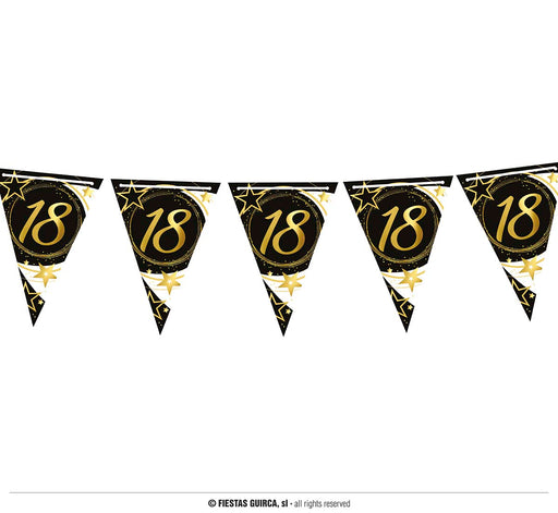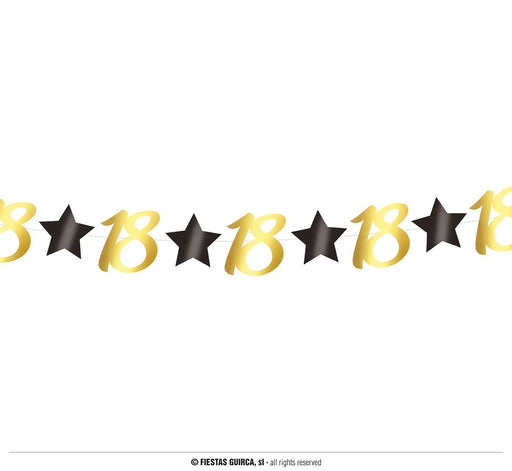 Esalta il tuo 18esimo compleanno con questa splendida ghirlanda a mo' di festone! La ghirlanda è composta da numeri 18 dorati e con stelle nere, pe...