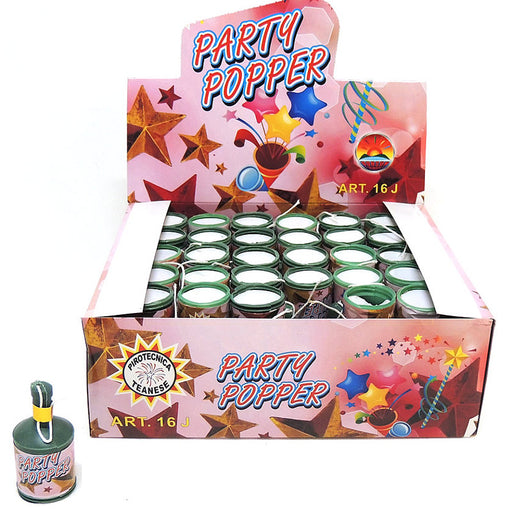 Bottigliette che lanciano un getto di coriandoli e stelle filanti. Mantenere l'artificio tenendo il braccio teso verso l'esterno, puntare lontano ...