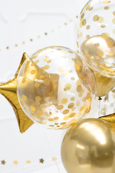 ✨ PALLONCINO CRYSTAL CORIANDOLI ORO DISEGNATI SULLA PLASTICA ✨ Aggiungi un tocco di eleganza e brillantezza alle tue feste con questo splendido pal...