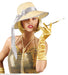 Elegante cappello modello chicago con falda grande, totalmente realizzato in paglia con fiocco colorato in raso. Finemente decorato e prodotto con materiali di qualita'. Da abbinare ad abiti del '800, primi del '900. Circonferenza centimetri 59. Abbiamo disponibile il cappello con fiocco argento e quello marrone.
