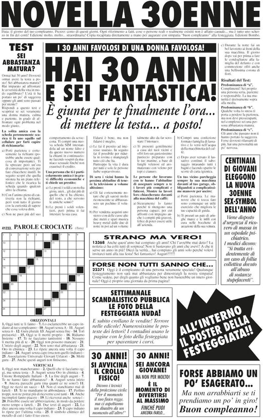 Biglietto d'auguri, a mo' di quotidiano, dedicato ai 30enni, 40enni e 50enni di oggi. La versione del quotidiano è sia per gli uomini, sia per le d...