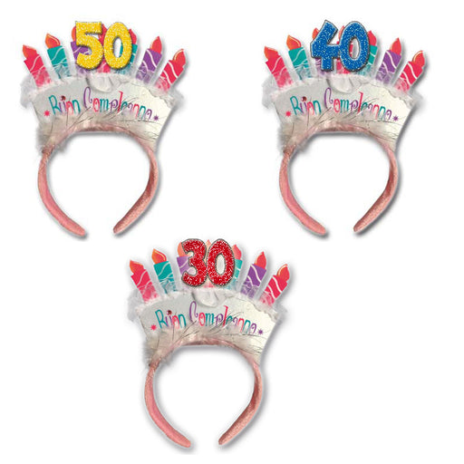 Cerchietto realizzato in plastica rigida da mettere in testa per festeggiare un compleanno importante. Abbiamo il cerchietto per i 30, 40, 50 e 60 ...