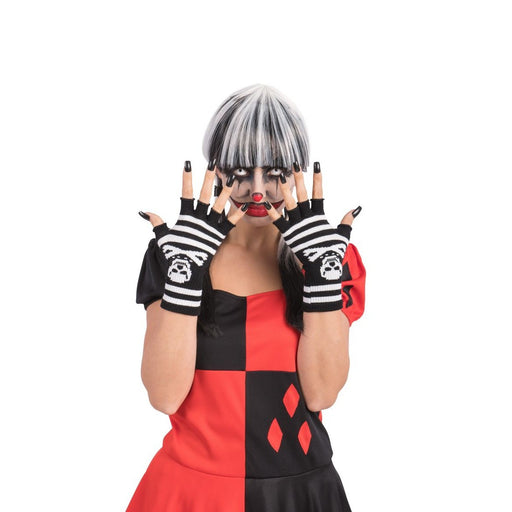 Perfetti come accessorio per un travestimento punk o da strega di Halloween. Guanti realizzati in lana con un teschio decorato sopra ogni guanto. C...