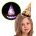 Cappellino conico con la scritta Happy Halloween. La particolarità è quella di avere dei led all'interno che si illuminano. Gadget molto originale, soprattutto per i bambini. Dimensioni: altezza centimetri 18.