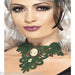 Collana di colore verde con due perle da abbinare ad una molteplicita' di costumi. Decorata da uno stemma che raffigura il profilo di una nobil donna. Far risaltare la bellezza del volto femminile che la indossera'.