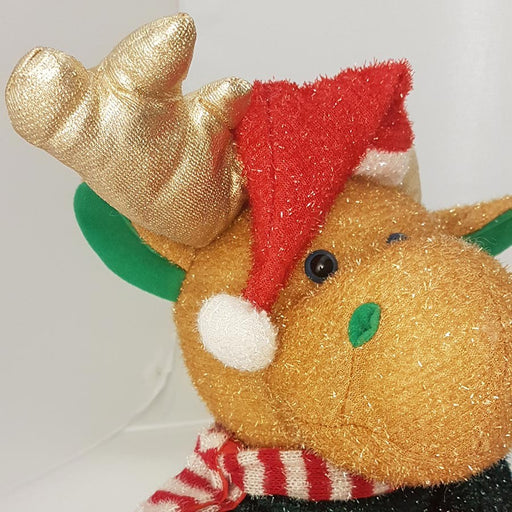 Simpatico peloche che ritrae una renna di Natale avvolta nel suo maglioncino verde e con idosso un caratteristico cappuccio da Babbo Natale. Splend...