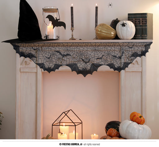 BORDURA IN PIZZO NERO CON DISEGNO RAGNATELA E PIPISTRELLI