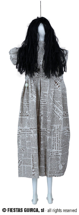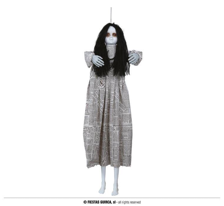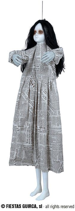 Scoprite la straordinaria "bellezza" di questa Bambina Cadaverica con Vestito di Giornale ed Occhi Luminosi! Un articolo sofisticato, realizzato con cura, per elevare l'atmosfera di ogni ambiente con magia, fascino e un tocco di terrore. La delicatezza ed originalità di ogni particolare vi sorprenderanno! Lasciatevi trasportare nel regno di Halloween, grazie a questo terrificante appendibile che ha gli occhi illuminati di rosso e muove ritmicamente la testa, come se avesse le convulsioni! Altezza cm 120.