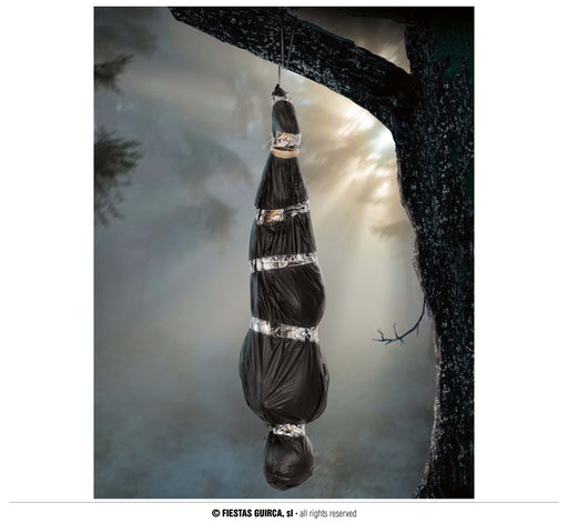 DECORAZIONE GONFIABILE UOMO MORTO APPENDIBILE CON SACCO NERO