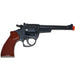 Pistola modello revolver dei cowboy. Corpo in metallo e calcio in plastica rigida di colore marrone. Dimensioni: lunghezza centimetri 20. Puoi acquistare le munizioni da 8 colpi a parte.