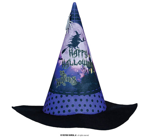 Tessuto morbidissimo e disegno stampato: preparatevi a incantare con il cappello da strega viola e nero per bambine! Un meraviglioso cappello da fe...