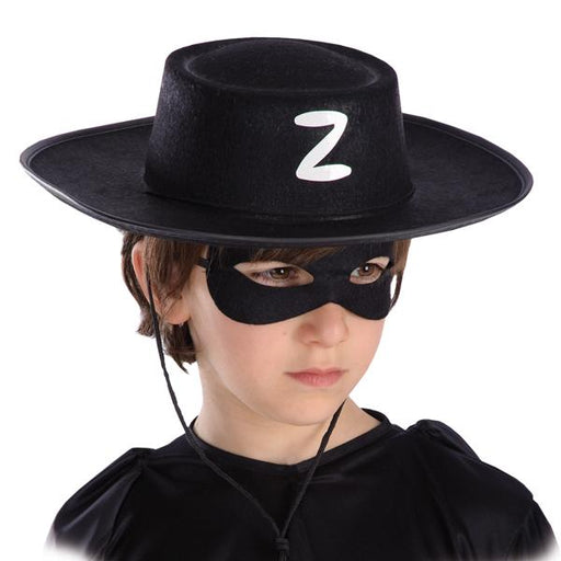Cappello in similfetro del mitico personaggio di Zorro; misura da bambino con falda e circonferenza più piccola. Ottimo per completare il tuo trave...