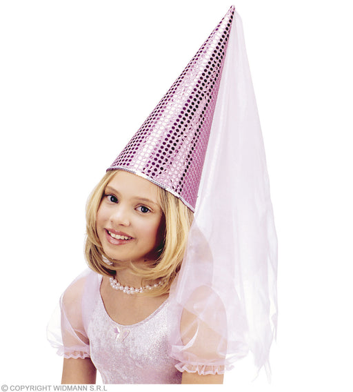 Cappello da fatina realizzato in plastica morbida e ricoperto da tessuto. Il tessuto con cui è ricoperto il cappello è completamente ricoperto da p...