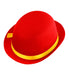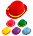 Bombetta da bambino realizzata con una base di cartoncino e ricoperta con del feltrino. Abbiamo a disposizione i seguenti colori: rosso, verde, giallo e rosa. La circonferenza interna è di circa cm 54. Perfetta anche per i clown adulti che desiderano avere una parrucca multicolor voluminosa e una bombetta piccola sopra la folta capigliatura.