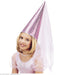 Cappello da fatina realizzato in plastica morbida e ricoperto da tessuto. Il tessuto con cui è ricoperto il cappello è completamente ricoperto da paillettes. Abbiamo sia il cappello con paillettes rosa, sia quelle celesti. Il cappello da fatina ha la forma di un cono. E' presente un pratico elastico di colore bianco, sulla parte inferiore del cappello. Questo elastico dovrà essere posto sotto il mento, della persona che indosserà il cappello. La parte superiore del cappello termina con un pezzo di tulle, del medesimo colore del cappello. Altezza del cappello: centimetri 35. La bordatura inferiore del cappello è rifinita con pailletes di colore argento. Il tessuto con cui è ricoperto il cappello è il poliestere. Il cappello da fatina può essere indossato indistintamente da bambini ed adulti.