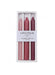 Confezione contenente 3 candele in cera per poter decorare la tavola. La particolarità di questa confezione è quella di contenere 3 candele con 3 gradazioni differenti del medesimo colore, che vanno dal rosa pastello al rosa carne al rosa tendente al fuxia. Le candele hanno un'altezza di cm 20.