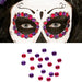 Confezione composta da ben 40 gemme colorate. La caratteristica è quella di essere colorate e adesive. Potrai porle senza alcun problema lungo il perimetro degli occhi, per far risaltare ad esempio un trucco professionale del volto. Perfette per decorare una maschera in plastica completamente bianca, per trasformarla in quelle utilizzate durante il dia de los muertos: il 2 di Novembre.