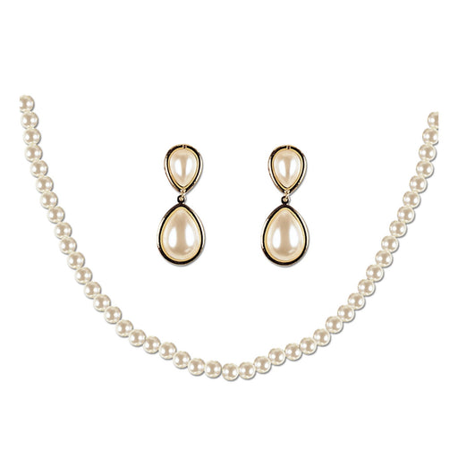 Blister in cartoncino contenente una collana di perle e due orecchini sempre di perle con pendenti. Le perle sono realizzate in plastica, ma sono m...