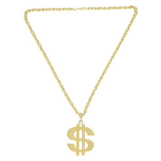 Collana completamente realizzata in metallo paccato d'oro, con pendente il simbolo del dollaro. Bellissimo pataccone...per malati di protagonismo. ...