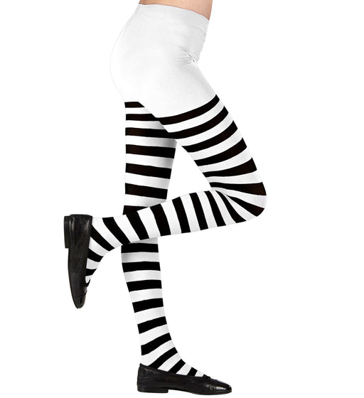Collant rigato bianco nero in 70 denari; taglia unica per adulto.