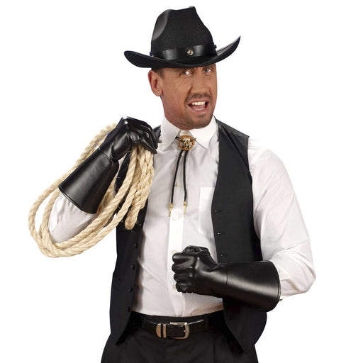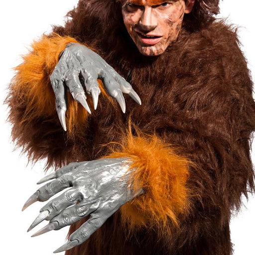 Guanti enormi che danno l'impressione di mani grandi. Mani da mostro di una colorazione inequivocabile. Con unghie.