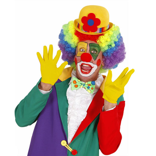 Guanti in poliestere di buona fattura con cuciture, di colore giallo in misura unica. Dimensioni in centimetri: lunghezza 23 e larghezza 9. Da abbi...