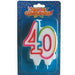 In occasione dei tuoi 40 anni, acquista questa candela di compleanno da appoggiare alla torta; la candela è alta circa 12 cm ed è con base bianca e bordo multicolorato.