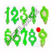 CANDELA RAFFIGURANTE IL NUMERO 9 IN CERA COLORE VERDE. ALT. Cm. 11; CON SUPPORTO IN PLASTICA TRASPARENTE