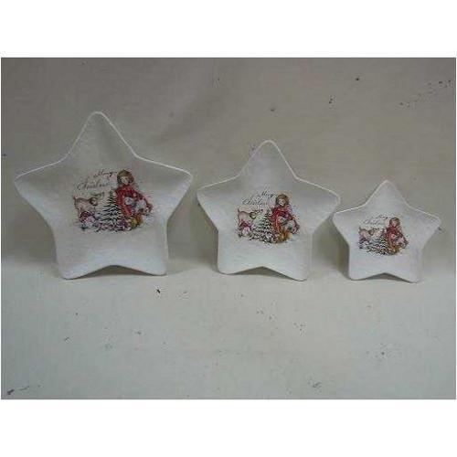 Questo piatto stella dalla misura di circa 25 cm in coccio bianco è decorato con una stampa centrale con angioletto e scritta MERRY CHRISTMAS; è id...