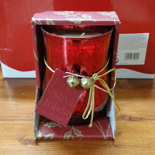 CANDELA NATALIZIA CON PORTACANDELA ROSSO. OTTIMA DECORAZIONE PER LA CASA A NATALE E SPLENDIDA IDEA REGALO.DIM: 7.5X10.5 CM.In scatola di cartone r...