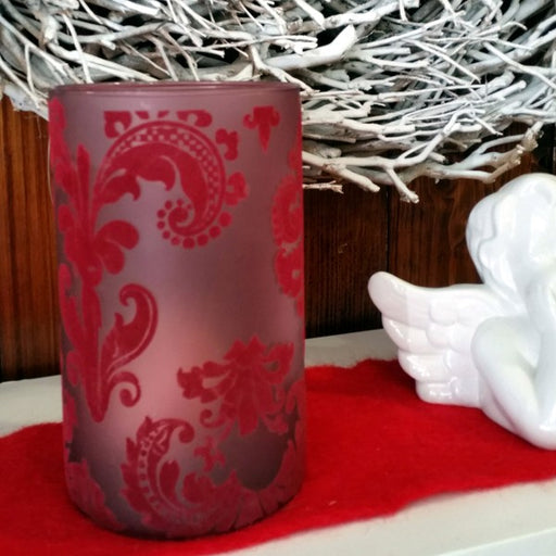 CANDELA ROSSA CILINDRICA DISEGNI STILIZZATI