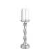 Perfetto come complemento di arredo, questo portacandela è realizzato con una base di alluminio o con il vetro trasparente, per quanto riguarda la parte superiore dell'articolo, che andrà a contenere una candela a moccolo. Il vetro è resistente al calore sprigionato dalla candela, e la trasparenza del vetro donerà magia all'ambiente circostante. Le dimensioni sono generose: altezza centimetri 31.5.