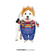Illumina la notte di Halloween con il costume da bambola diabolica! Composto da parrucca e tuta, il nostro costume è la scelta perfetta per i vostri cagnolini. Sperimenta l'emozione di guardare il tuo amato amico a quattro zampe, indossare questo abito spettrale e partecipare al divertimento della notte più tetra dell'anno. Sulla parte delle due braccia che è imbottita è presente un coltello in tessuto. Due misure disponibili: S e M.