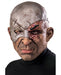 Gli hanno dovuto impiantare una colotta di ferro a questo losco personaggio. Soffriva di una malattia degenerativa che gli avrebbe fatto esplodere il cervello. Nella parte dell'occhio sinistro si notano tante bolle, che contengono parte del cervello. Perfetta maschera per un travestimento splatter di Halloween. La maschera è realizzata in fingomma, così come la calotta metallizata.