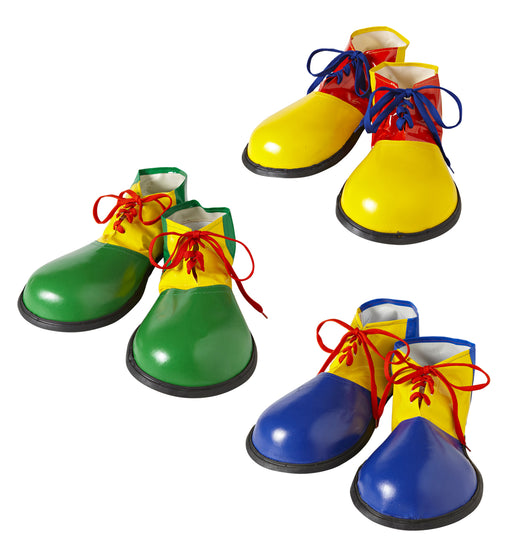 Scarpe da clown realizzate in lattice, con suola gommata. Tre differenti colori disponibili: giallo, verde e blu. Basterà mettere le proprie scarpe...