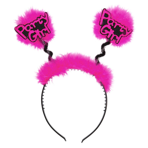 Simpaticissimo cerchietto con marabou sull'estremita' con la scritta party girl. Completamente realizzato in plastica resistente con marabou fuxia.