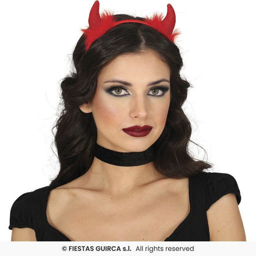Cerchietto con corna da diavolo rosse, tutto realizzato in plastica. La base del cerchietto è di colore nero.Lunghezza CM 19 x CM 17, taglia unica....