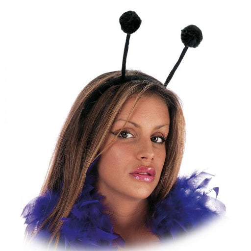 Cerchietto realizzato in plastica lucida di colore nero, con a ntenne e pon pon in peluche di colore nero. Dimensioni: altezza 20 centimetri, largh...