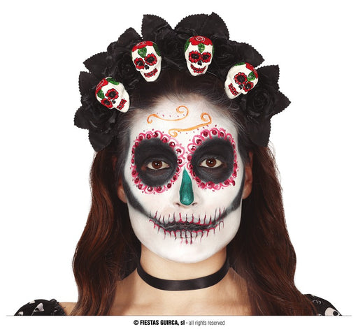 DIADEMA 4 TESCHI EL DIA DE LOS MUERTOS CON ROSE NERE