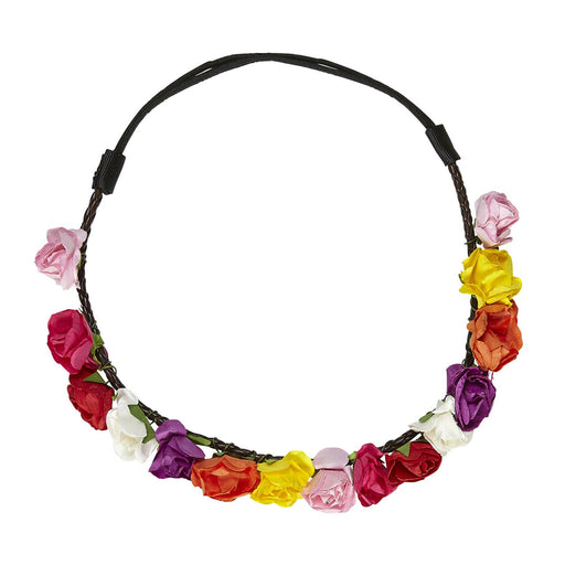 Fascia per la testa con tanti fiori attaccati ad un filo di caucciù. La lunghezza della fascia è di centimetri 50, perfetta per ogni testa.