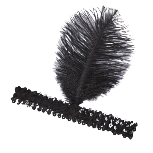 FASCIA PER TESTA PAILLETTES E PIUMA NERE
