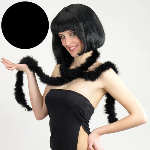 Morbido boa in piume marabu' di colore nero da abbinare ai costumi in stile charleston o burlesque. Lunghezza 180 centimetri.