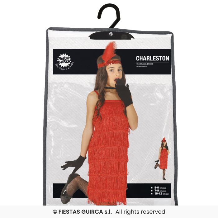 La prima volta che compare un costume da charleston per bambina, all'interno del nostro catalogo. Il costume è rosso con tante frange. La lunghezza è fino al ginocchio. Abito delizioso realizzato in poliestere. All'interno della confezione è presente anche la fascia di paillettes rosse, con piuma dello stesso colore. Abbiamo a disposizione due differenti taglie: la 7-9 anni e la 10-12 anni. Dovrai acquistare solamente un paio di guanti. Nel nostro store abbiamo a disposizione anche quelli a rete o di pizzo. Potrai acquistare anche delle calze a rete di colore nero.