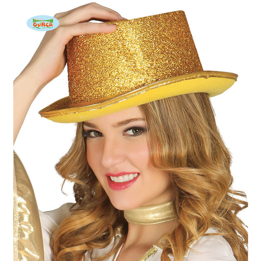 Cilindro tutto sbrilluccicoso con paillettes di colore oro, da poter abbinare a giacche o gilet del medesimo colore, che trovi in vendita sul nostr...