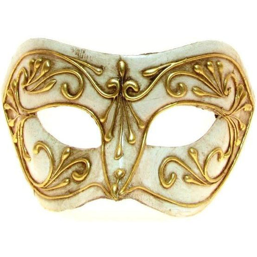 Maschera Veneziana Colombina, modello Butterflower, bianca con finiture dorate, caratterizzata dalla splendida ricostruzione floreale laterale. Mas...