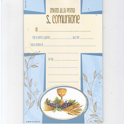 20 INVITI COMUNIONE CELESTE CON BUSTA