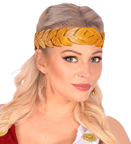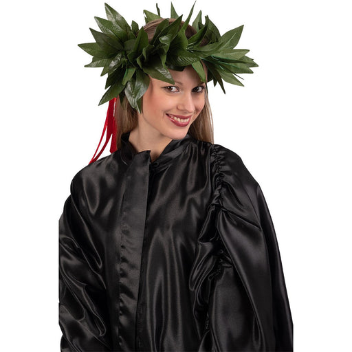 Corona di alloro completamente realizzata in plastica leggera che puo' essere messa sulla testa a mò di corona. Di grande effetto visivo