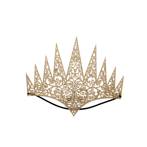 La corona è realizzata in tessuto intagliato e colorato con un oro anticato. Viene indossata come una fascia sulla fronte, grazie ad un pratico ela...