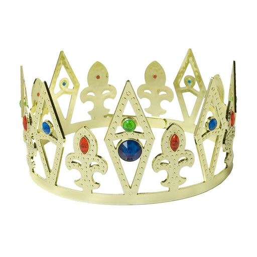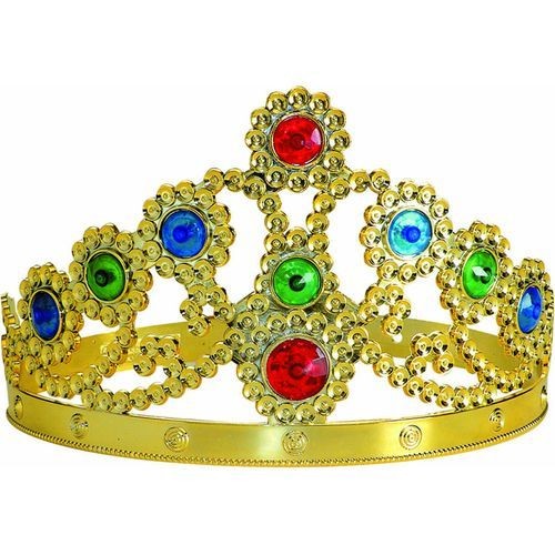 CORONA DA RE IN PLASTICA DORATA CON GEMME COLORATE
